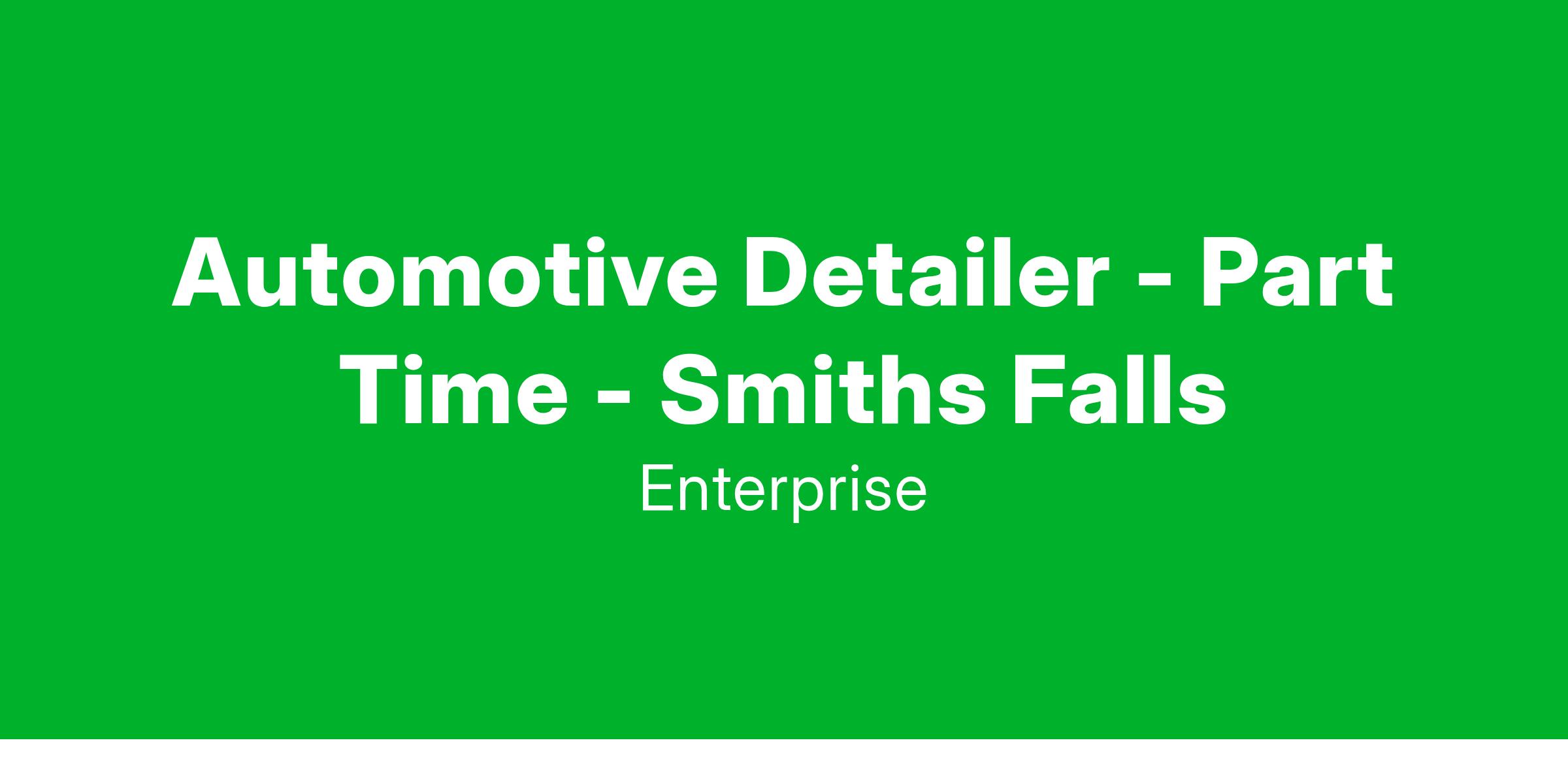 Enterprise Mobility is seeking a responsible, dedicated person to join our team as an Automotive Detailer. Opening available at the following branch location: 199 LOMBARD ST HWY 15 SMITHS FALLS, ON K7A 5B4.