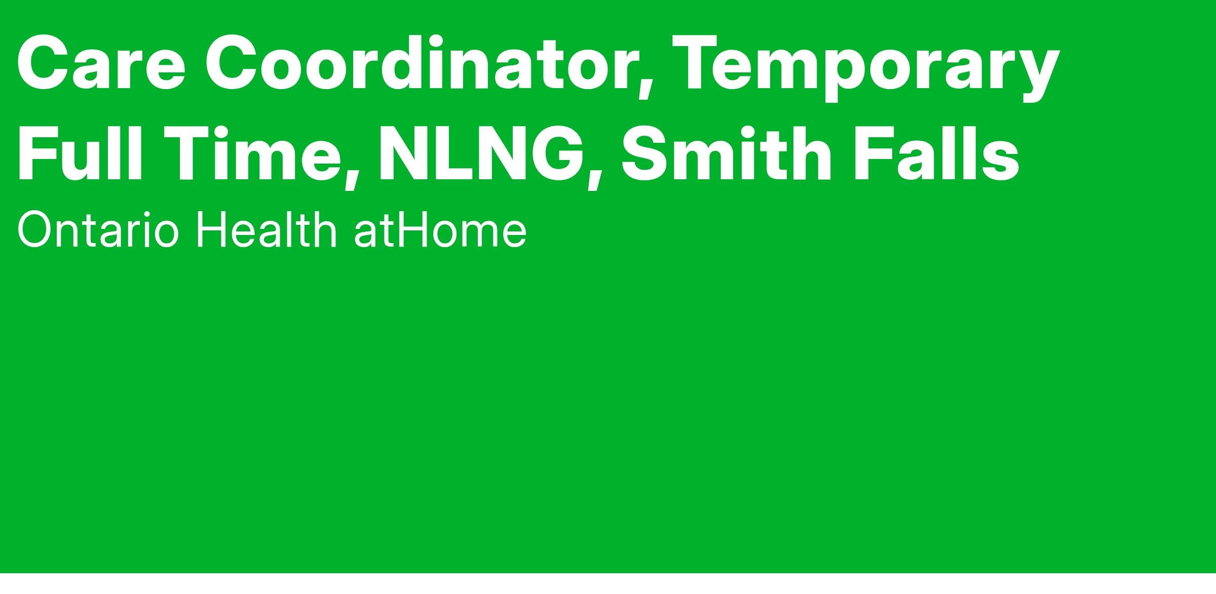 Under the general direction of the Manager, Patient Services, the Care Coordinator is responsible for managing a caseload of diverse patients who are living and/or dealing with a variety of health concerns. The Care Coordinator, through in person visits, assesses the patient’s care needs and develops, implements, and updates (as required) a care plan that is informed by the patient’s health and psychosocial needs; and, where possible, accommodates patient and caregiver wishes. He/she also determines eligibility for and arranges for Ontario Health atHome Champlain-approved health care services and refers patients and caregivers to other community resources and programs.