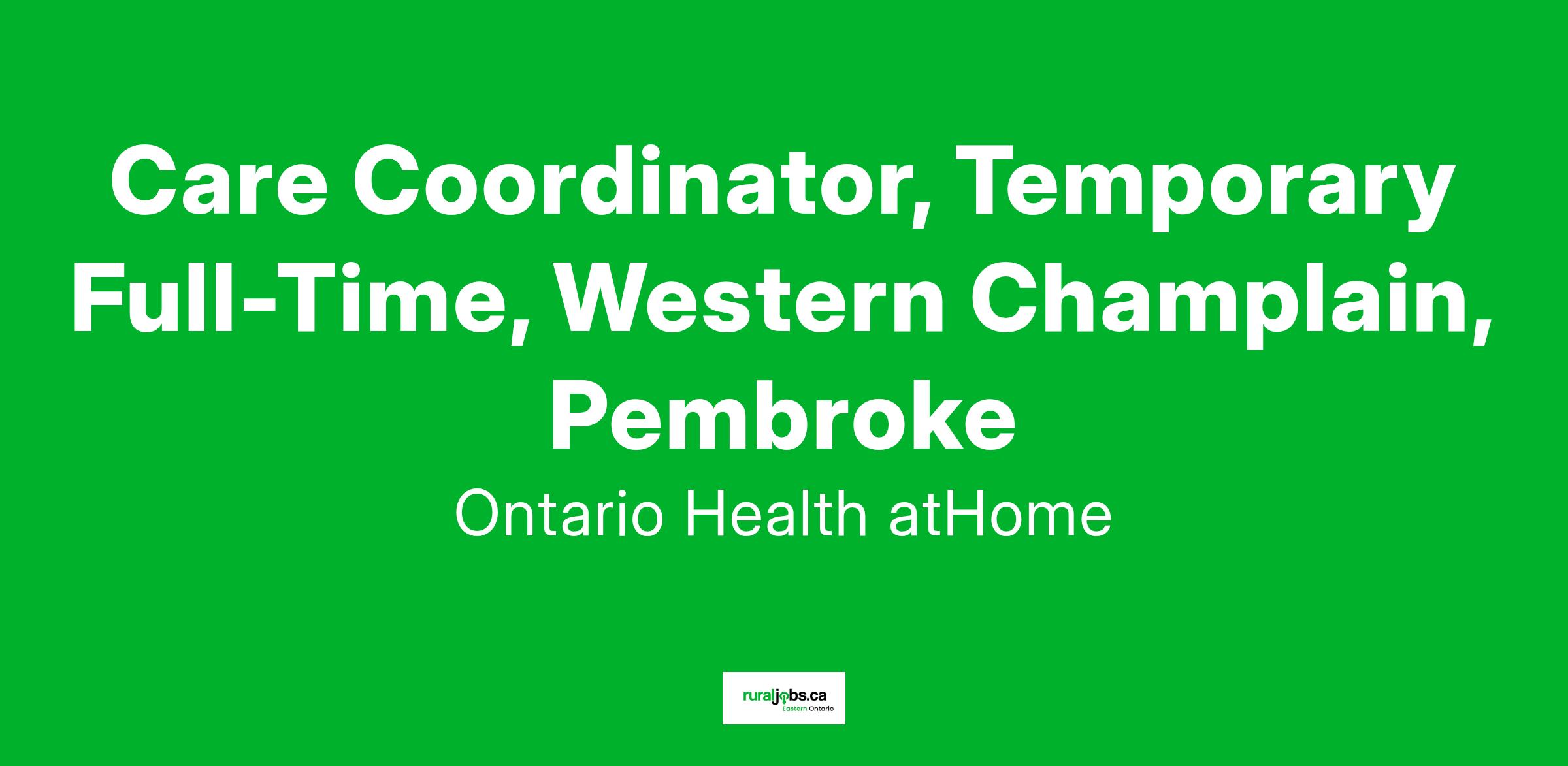 Under the general direction of the Manager, Patient Services, the Care Coordinator is responsible for managing a caseload of diverse patients who are living and/or dealing with a variety of health concerns. The Care Coordinator, through in person visits, assesses the patient’s care needs and develops, implements, and updates (as required) a care plan that is informed by the patient’s health and psychosocial needs; and, where possible, accommodates patient and caregiver wishes. He/she also determines eligibility for and arranges for Ontario Health atHome Champlain-approved health care services and refers patients and caregivers to other community resources and programs.