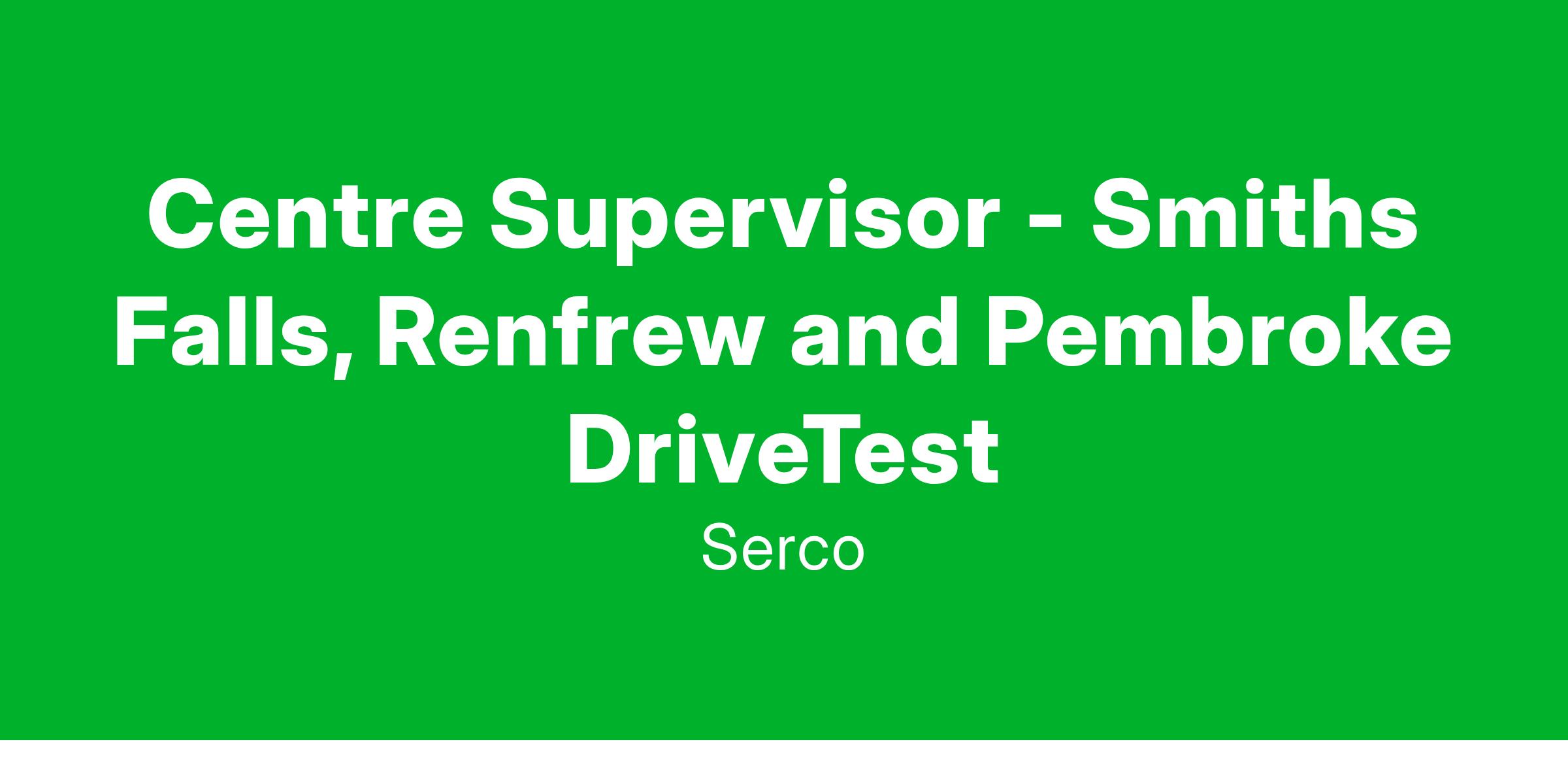 You will be part of a professional team which supports operations at all DriveTest Centres across Ontario on behalf of the Ministry of Transportation. Driver Examiners are based out of one of our 56 DriveTest Centre locations. Bring your expertise and customer service skills Serco Canada Inc. where challenging and rewarding job opportunities await you!