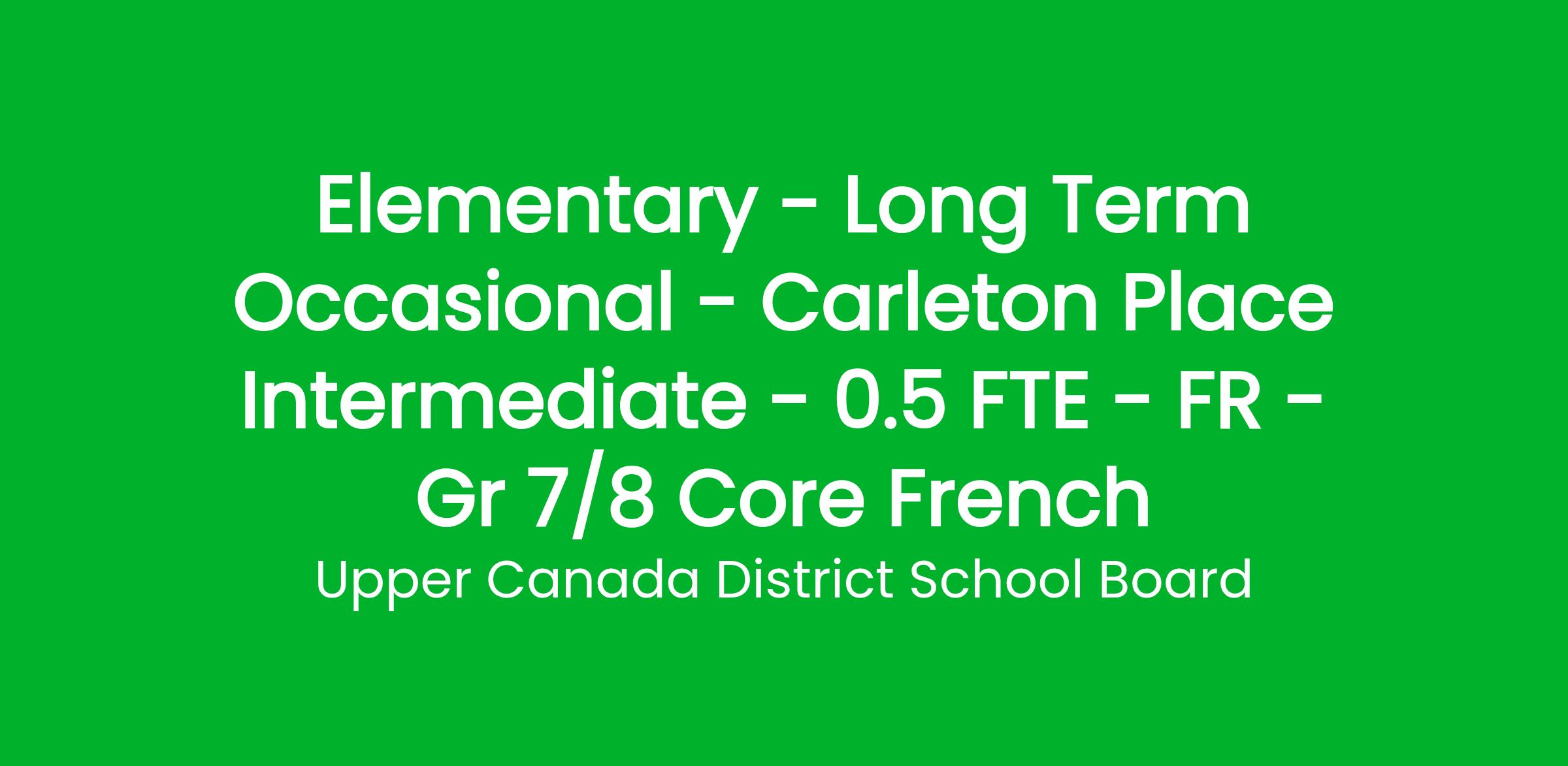 Elementary - Long Term Occasional - Carleton Place Intermediate - 0.5 FTE - FR - Gr 7/8 Core French