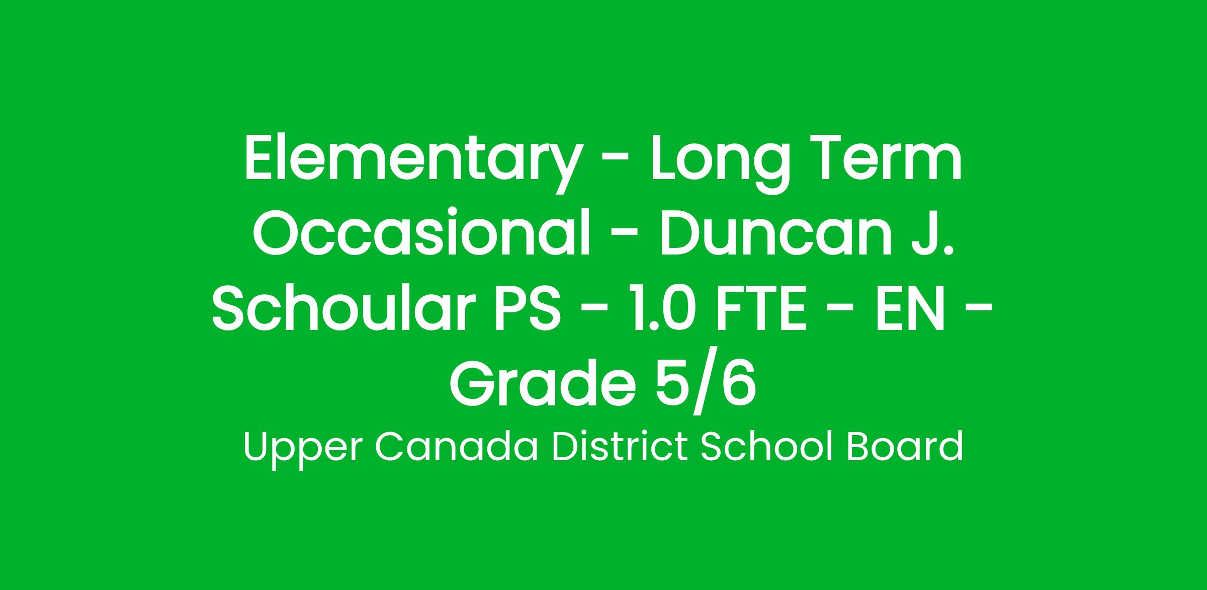 Elementary - Long Term Occasional - Duncan J. Schoular PS - 1.0 FTE - EN - Grade 5/6