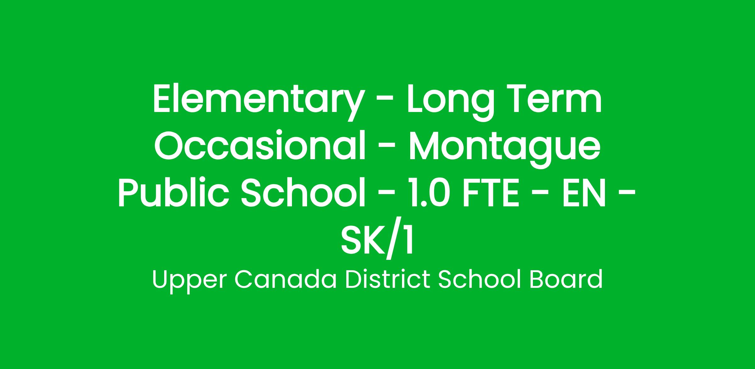 Elementary - Long Term Occasional - Montague Public School - 1.0 FTE - EN - SK/1