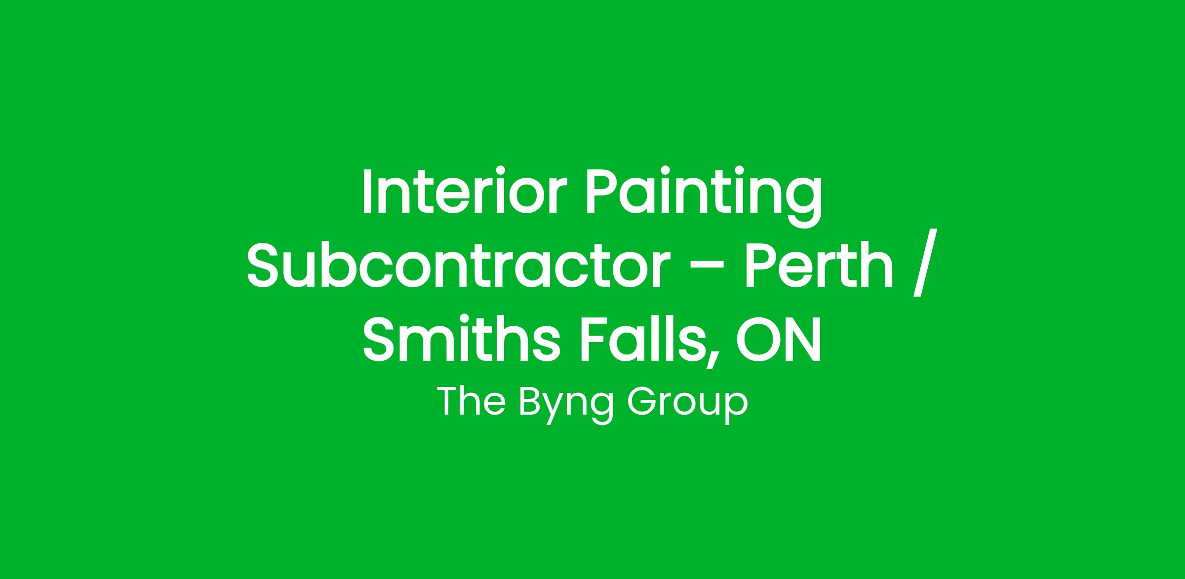 We are currently seeking experienced interior painting subcontractors for ongoing residential projects in Perth, Smiths Falls, Ontario, and surrounding areas.