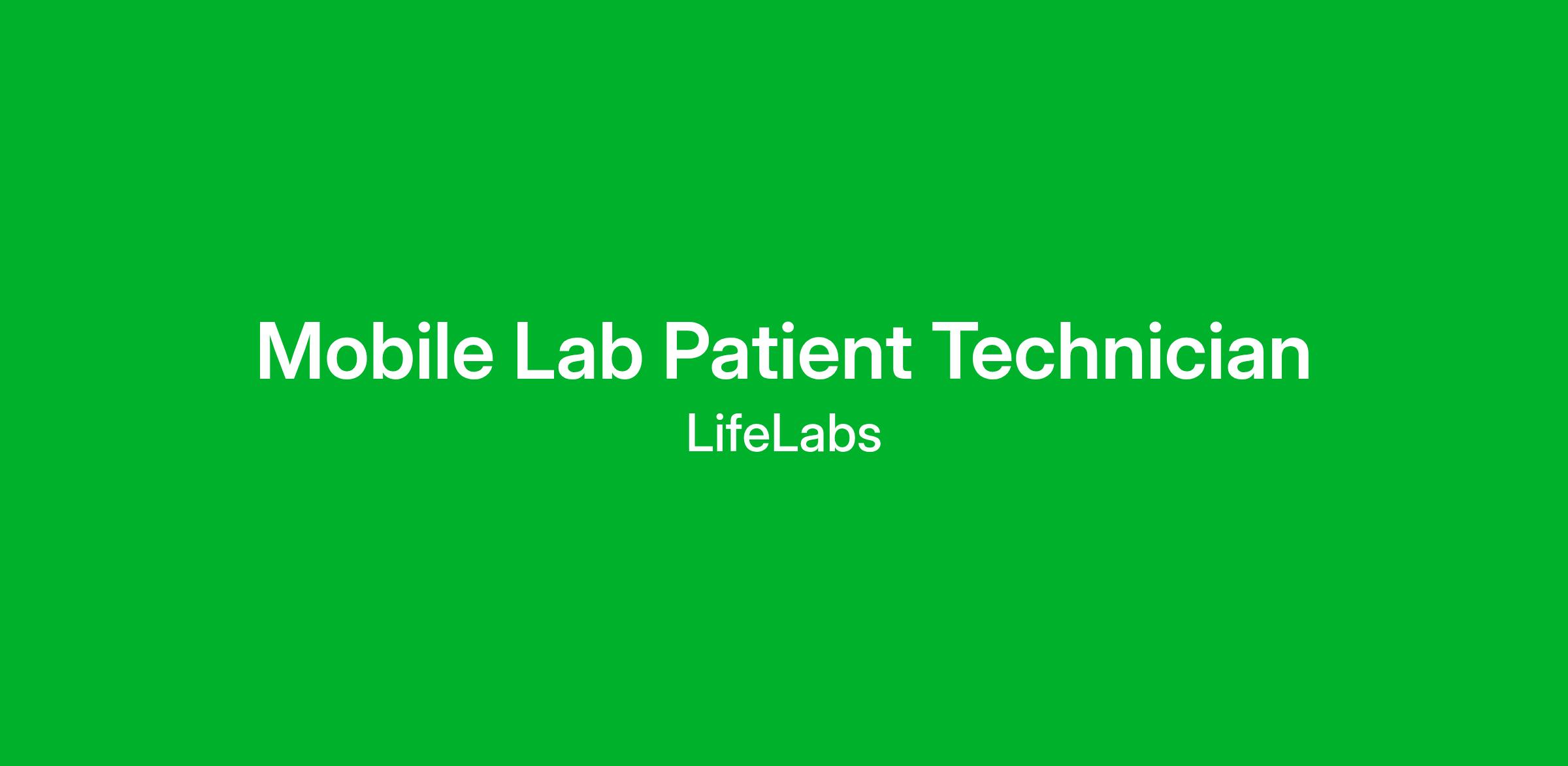 Our Mobile Lab Patient Technicians play an important part in on-site patient care in locations including private homes, commercial facilities, and long-term care facilities. This is an active and rewarding role that will let you build relationships with patients and see the difference that you make in their lives and healthcare outcomes.