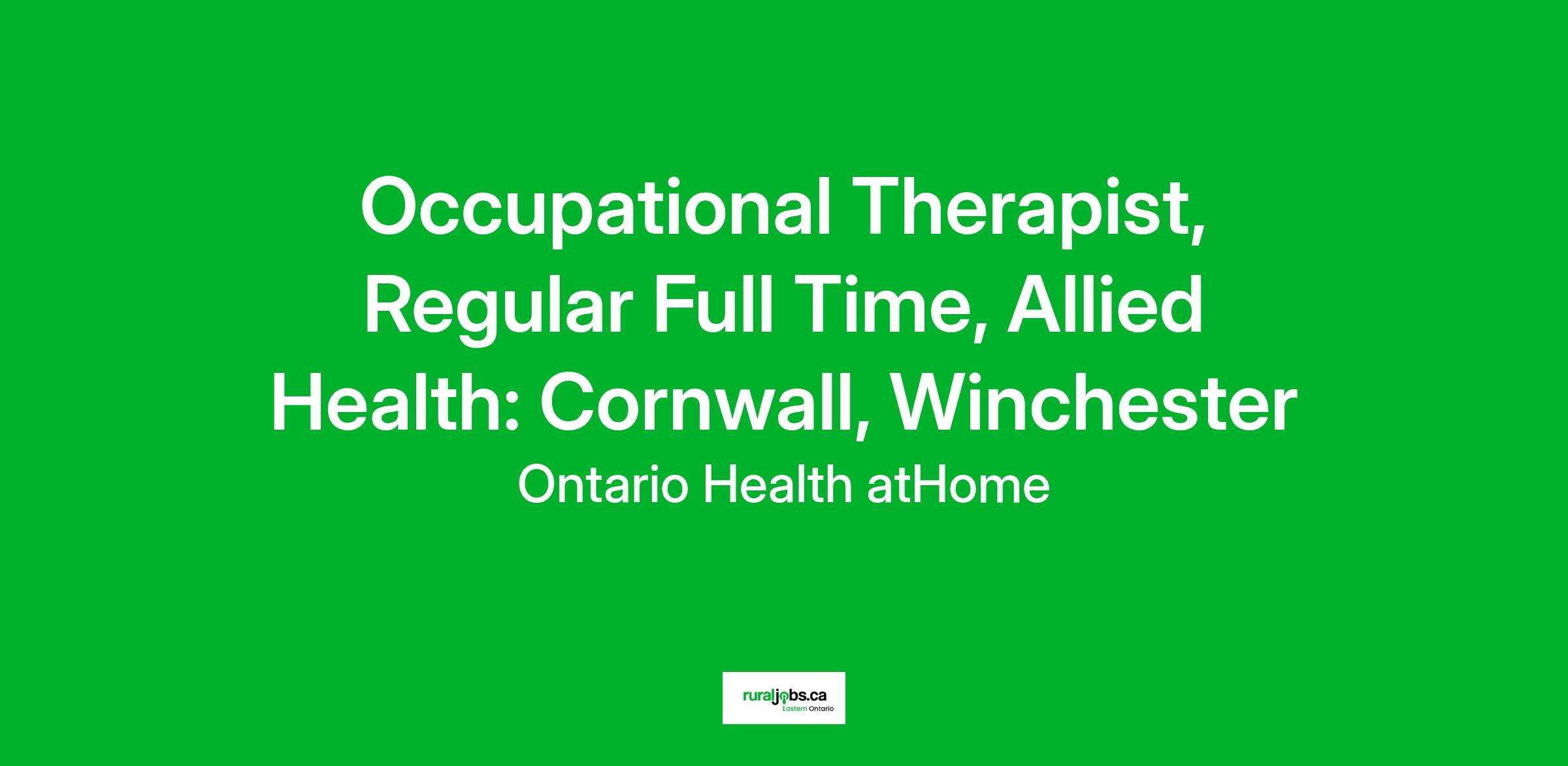 Occupational Therapist, Regular Full Time, Allied Health: Cornwall, Winchester