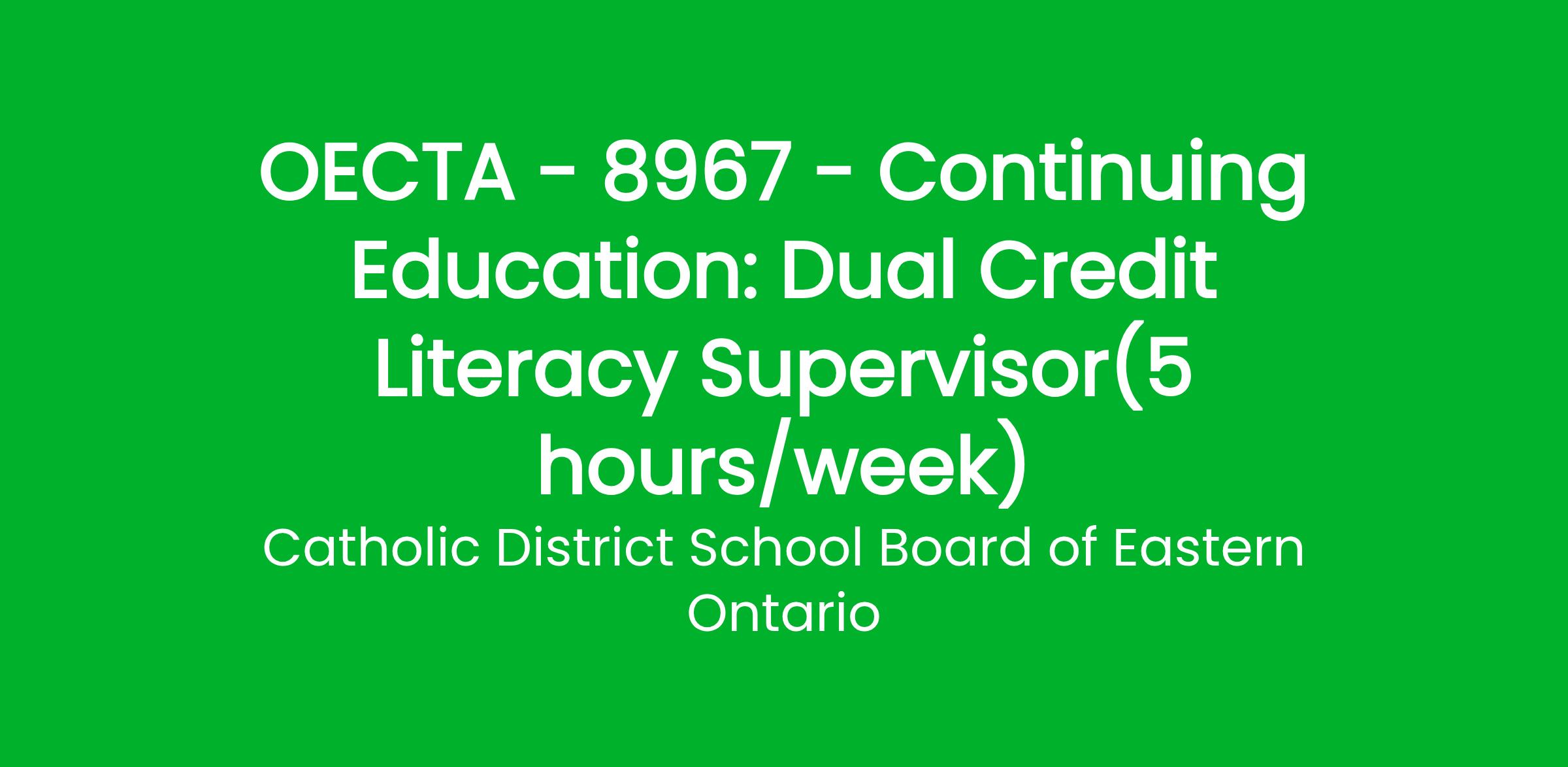 The successful candidate will support students enrolled in Dual Credit programs, monitoring student progress, offering interventions, providing individualized literacy support, and helping students meet the academic expectations of their college-level coursework. The candidate will also ensure strong communication between the CDSBEO and Algonquin College.