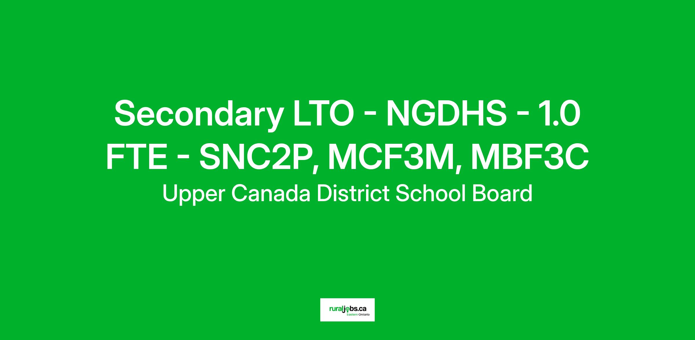 The UCDSB is currently hiring a Secondary Long-Term Occasional Teacher for the following: