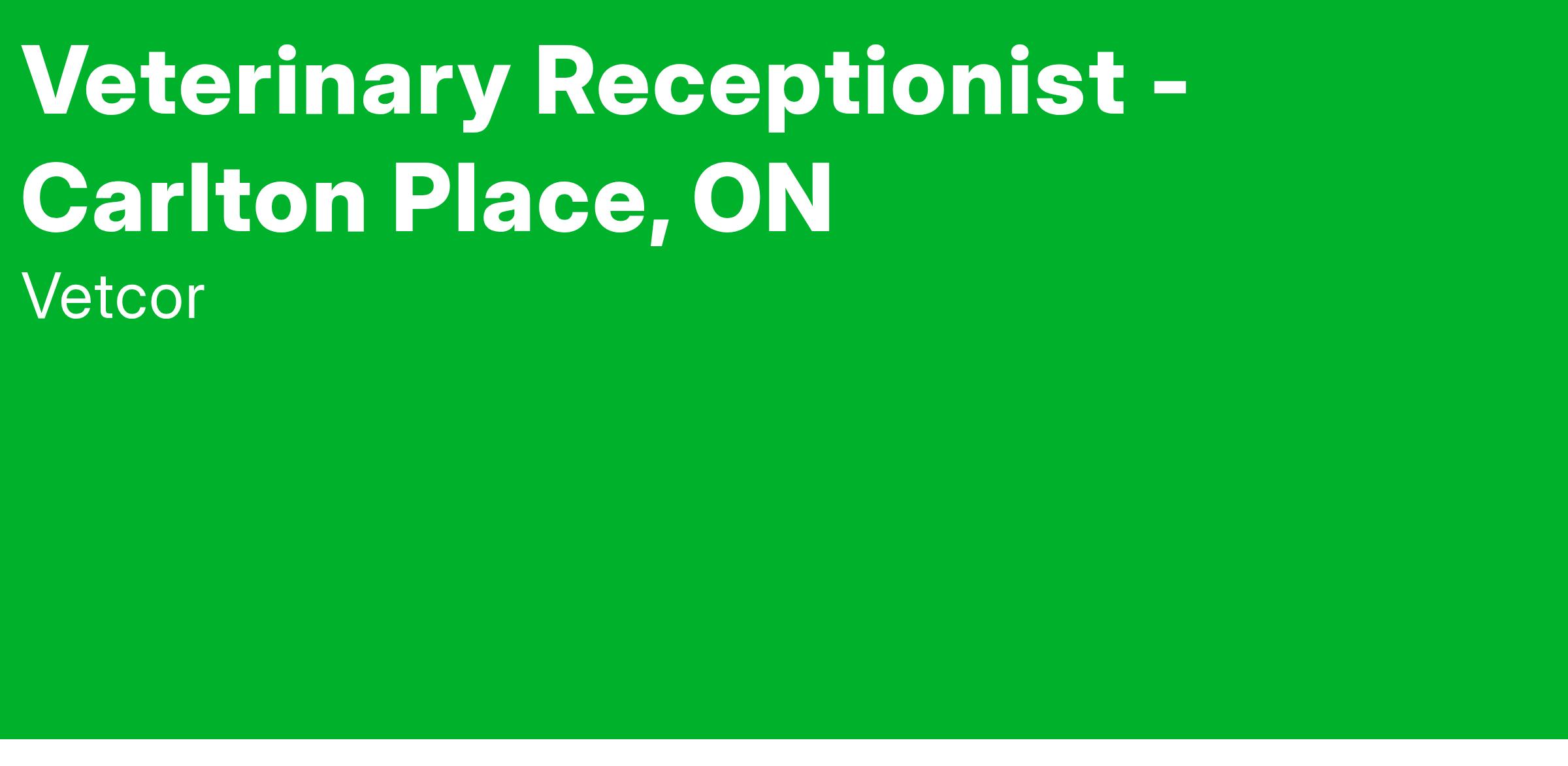 Valley Veterinary Clinic is looking for a full-time receptionist to join our small animal general practice in the vibrant, growing town of Carleton Place!