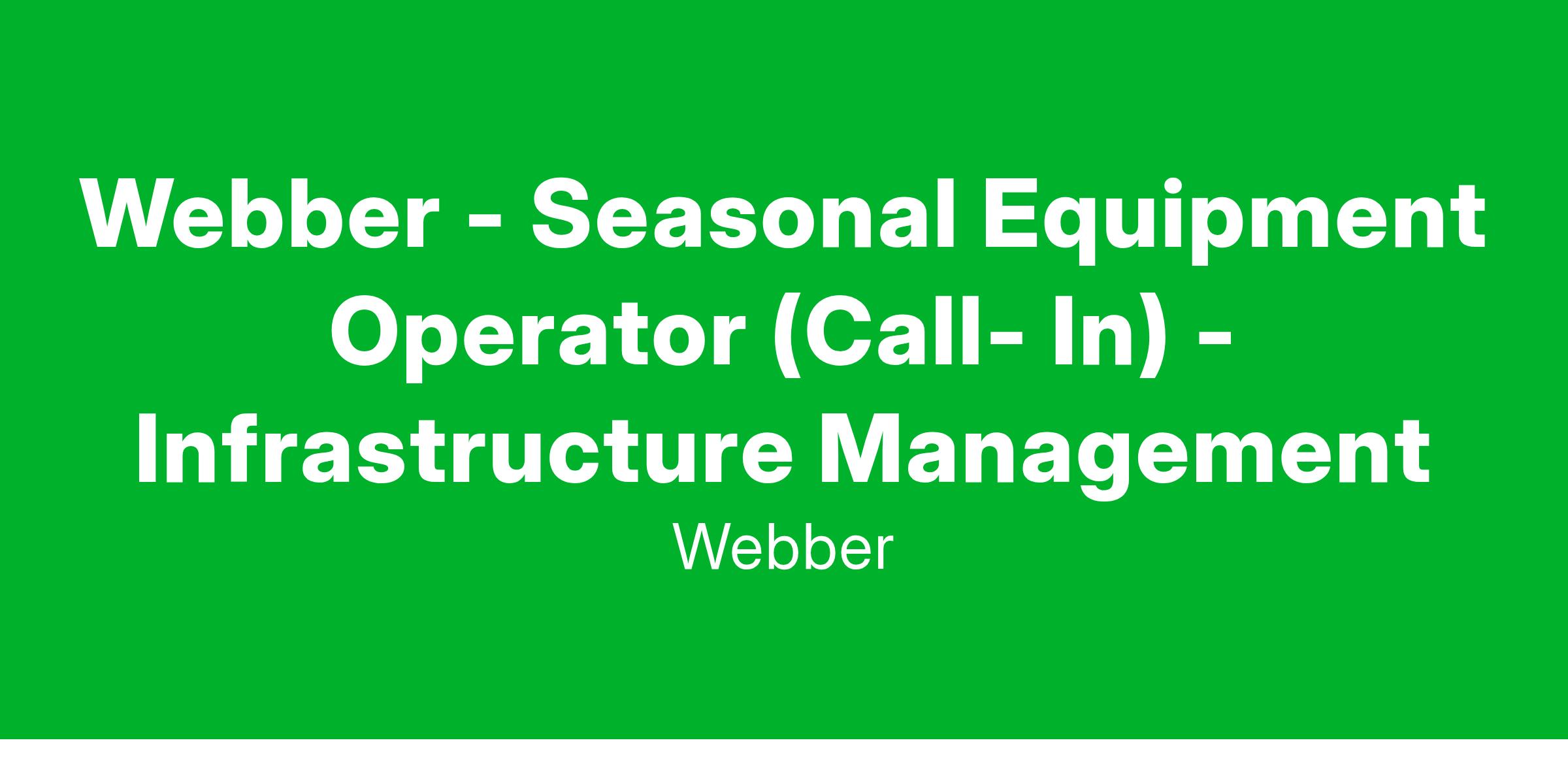 Webber - Seasonal Equipment Operator (Call- In) - Infrastructure Management